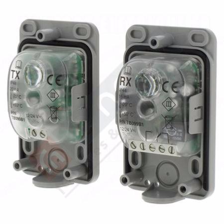 dispositif de type D selon la norme EN12453 qui permet de détecter les obstacles présents sur l’axe optique entre l’émetteur (TX) et le récepteur (RX).